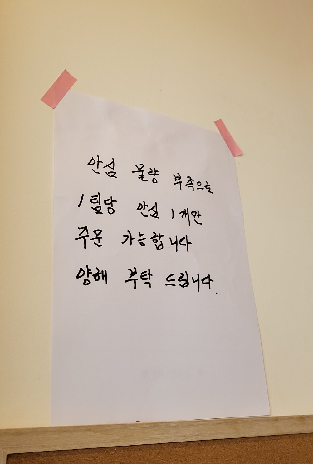 안심은 1팀당 1개만 가능하다고 해요!!