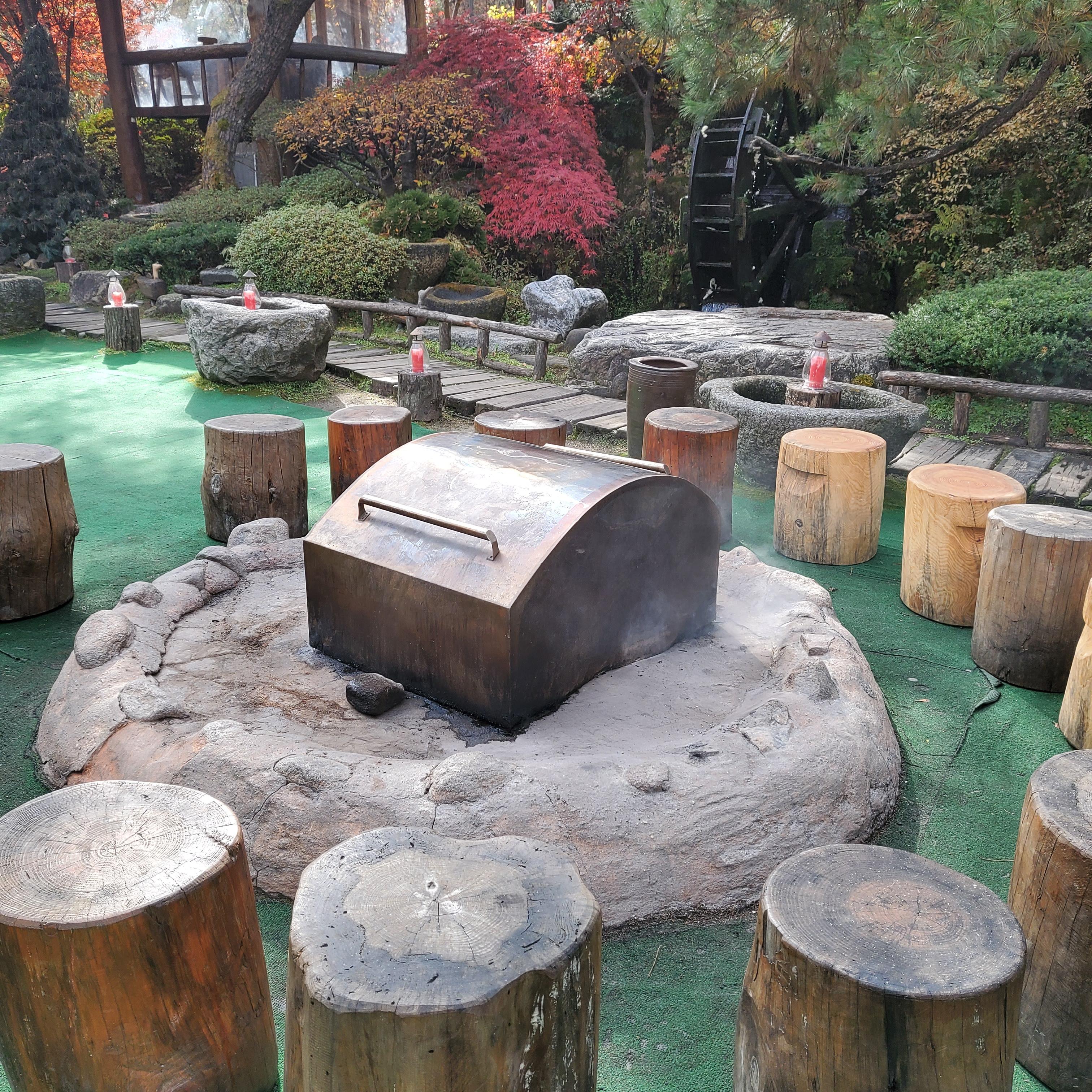 마당에는 정체 모를 화덕? 같은게 있었구 바로 옆에는 모닥불을 피우기 전 나무가 세팅되어있었어요.