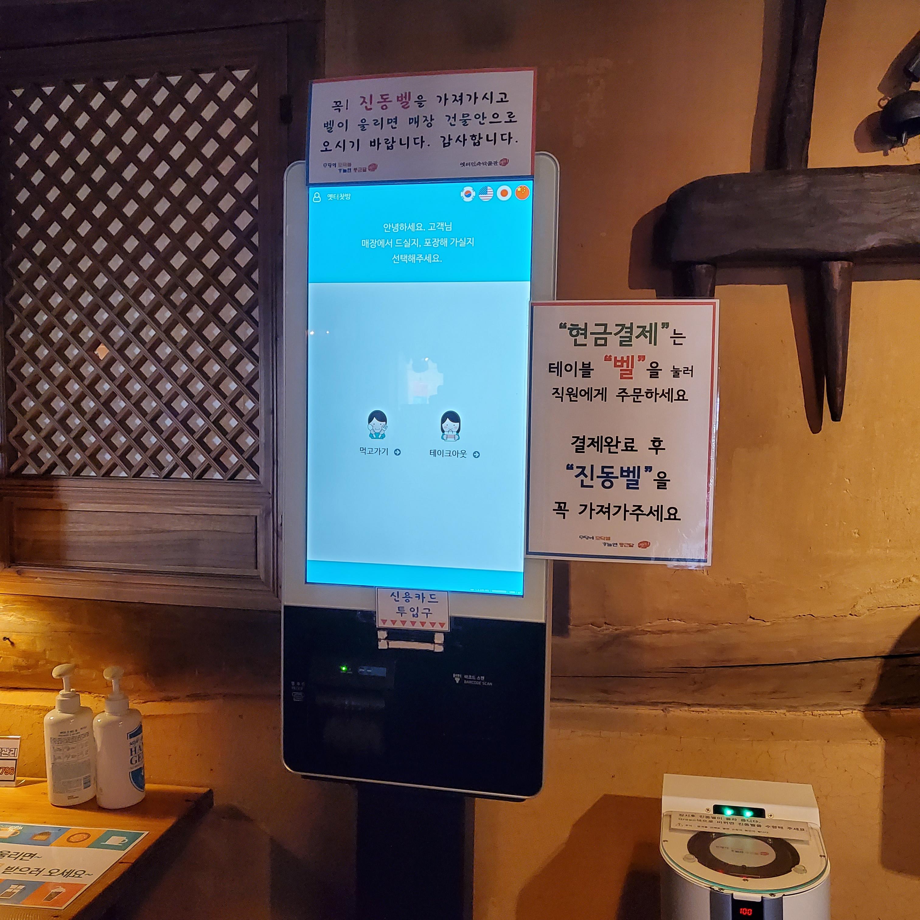 주문은 키오스크를 통해서 할 수 있구요, 결제까지 하고나면 진동벨이 쏘옥 올라와요